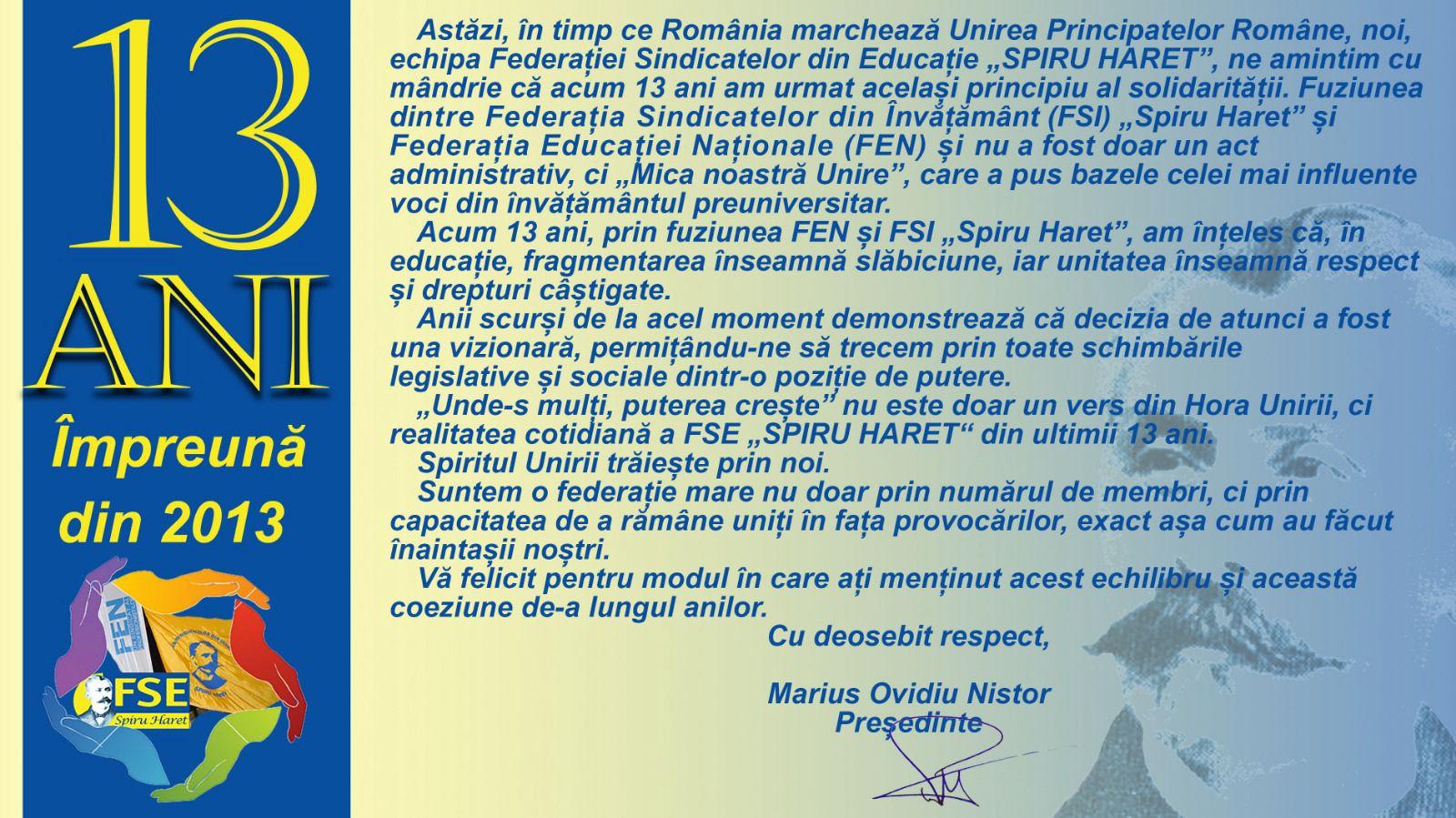 Federația Sindicatelor Libere din Învățământ (FSLI) și Federația Sindicatelor din...