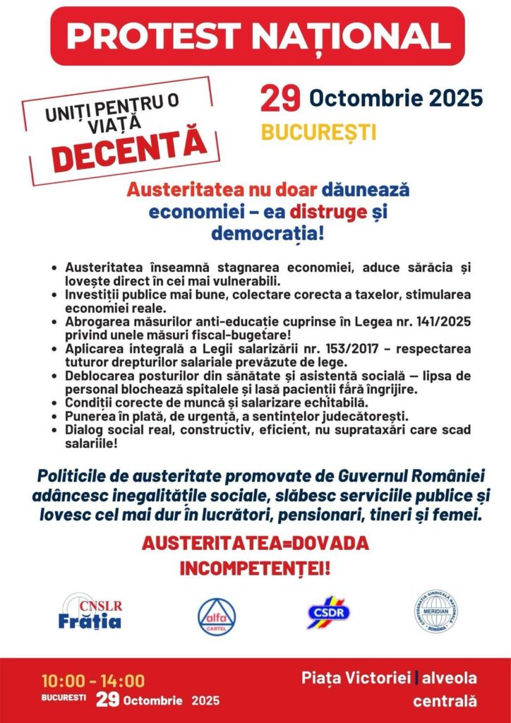 UNIȚI PENTRU O VIAȚĂ DECENTĂ! – Protest în Piața Victoriei- 29 Octombrie 2025